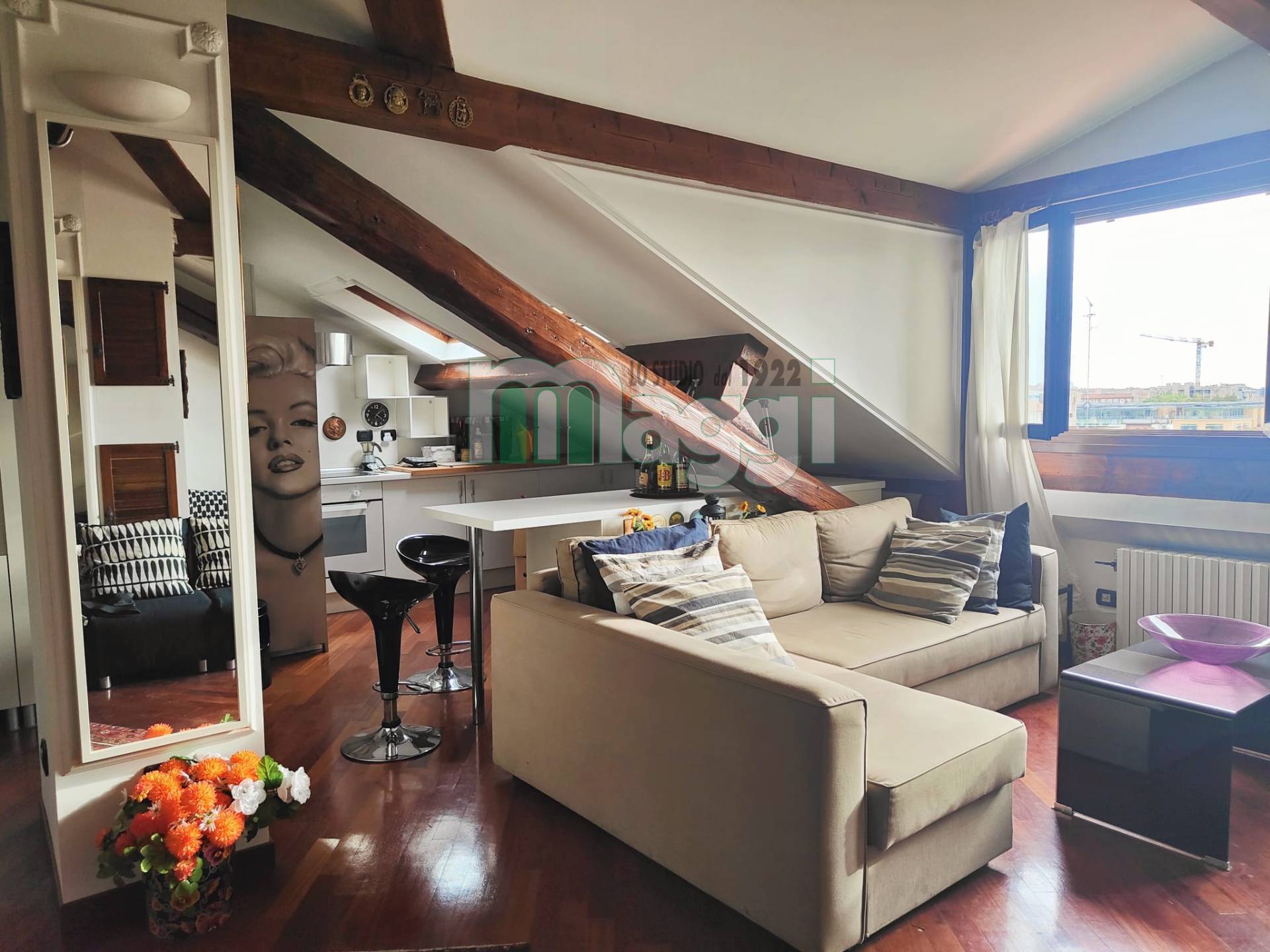Adiacenze Lotto, deliziosa mansarda mq 51 open space, finemente arredata, bel contesto condominiale. Doppia esposizione, molto curata, condizionata, luminosissima. comoda con MM 1 e 5,