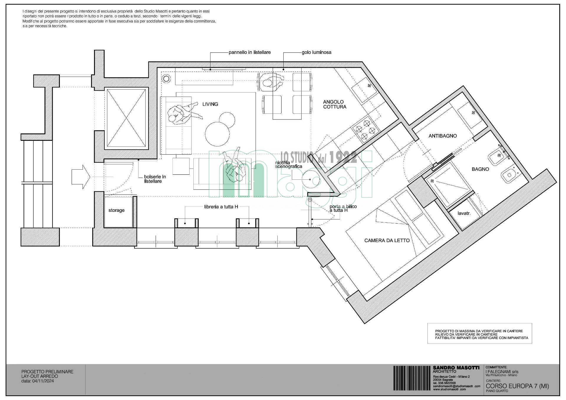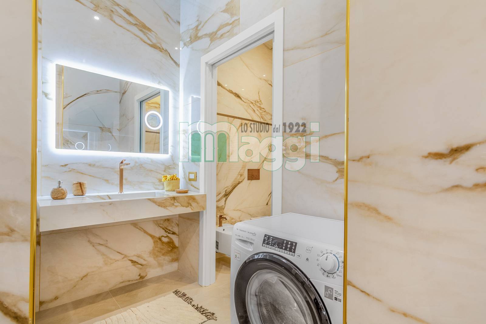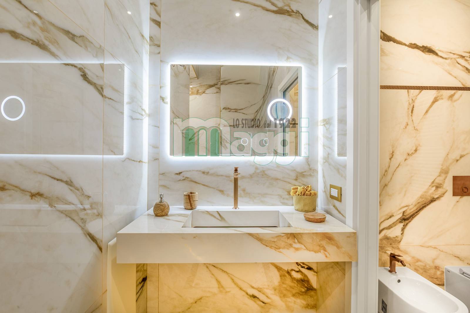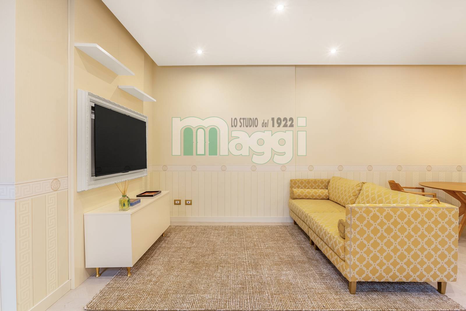 L'Appartamento si compone di due locali, l’arredamento di altissimo livello con mobili studiati ad hoc, un incantevole soggiorno composto da un divano, un mobile televisione, un angolo pranzo con un tavolo rotondo e le sedie rivestite in tessuto. La cucina è a scomparsa in legno di rovere come il tavolo. Il pavimento è in gres porcellanato Versace effetto legno, come la carta da parati sempre Versace in una tonalità delicata che riveste il soggiorno e la camera da letto. Il bagno è diviso da un antibagno con le pareti tutta altezza rivestite in gres tipo marmo, il lavabo è dello stesso materiale, la doccia e i sanitari come le rubinetterie sono di un’azienda di alto livello. L'affaccio interno lo rende silenzioso, l'illuminazione naturale è garantita da 3 ampie finestre. L'Appartamento ha un sistema di domotica e un condizionamento con pompa di calore ed è dotato di allarme perimetrico. Completa la proprietà una cantina pertinenziale all’interno del palazzo.