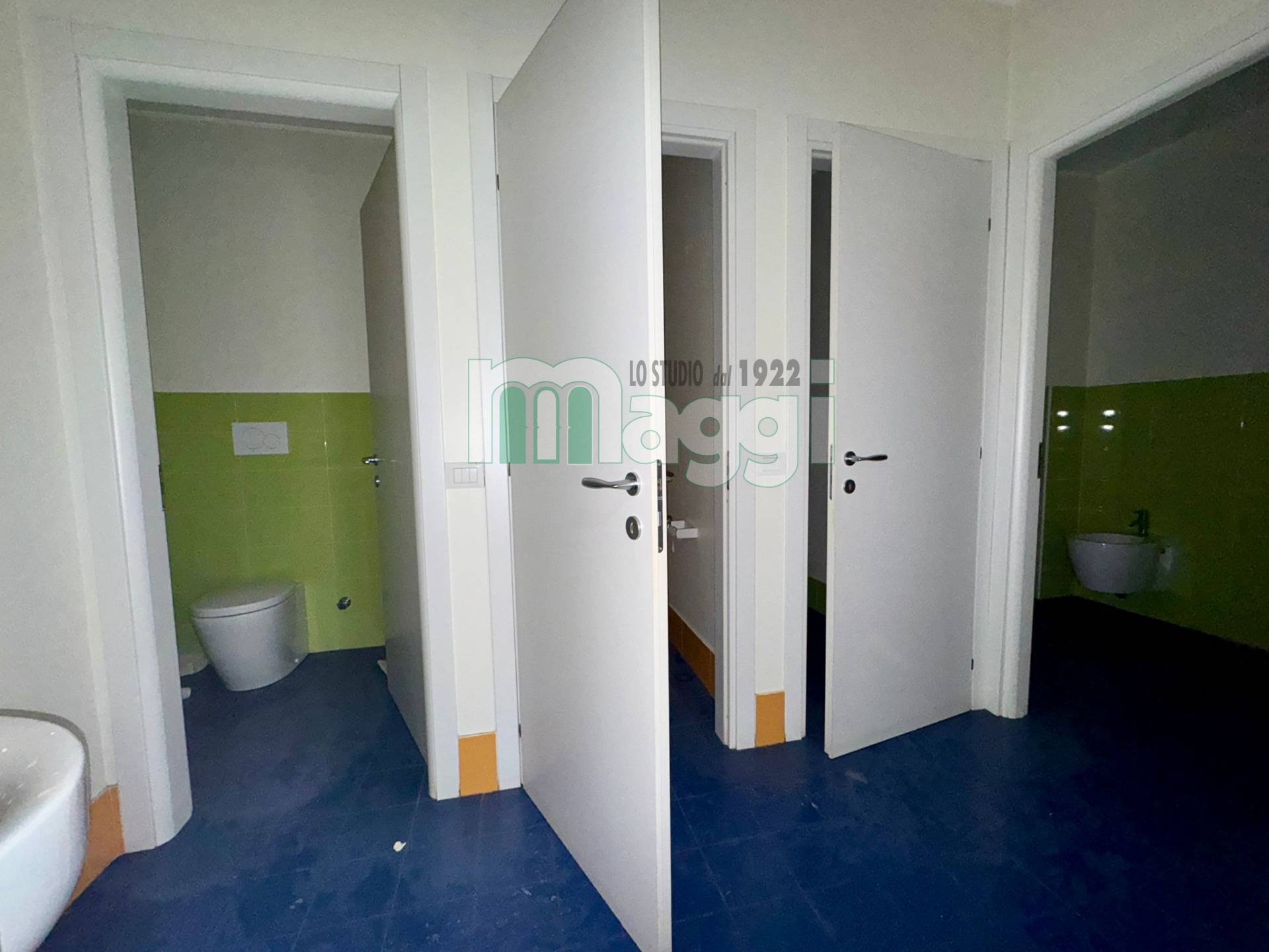 La palazzina in cui si trova l'immobile è molto ben curata, ingresso indipendente con passo carraio e possibilità di carico scarico e offre servizi aggiuntivi come dei posti auto e cortile comune piantumato.