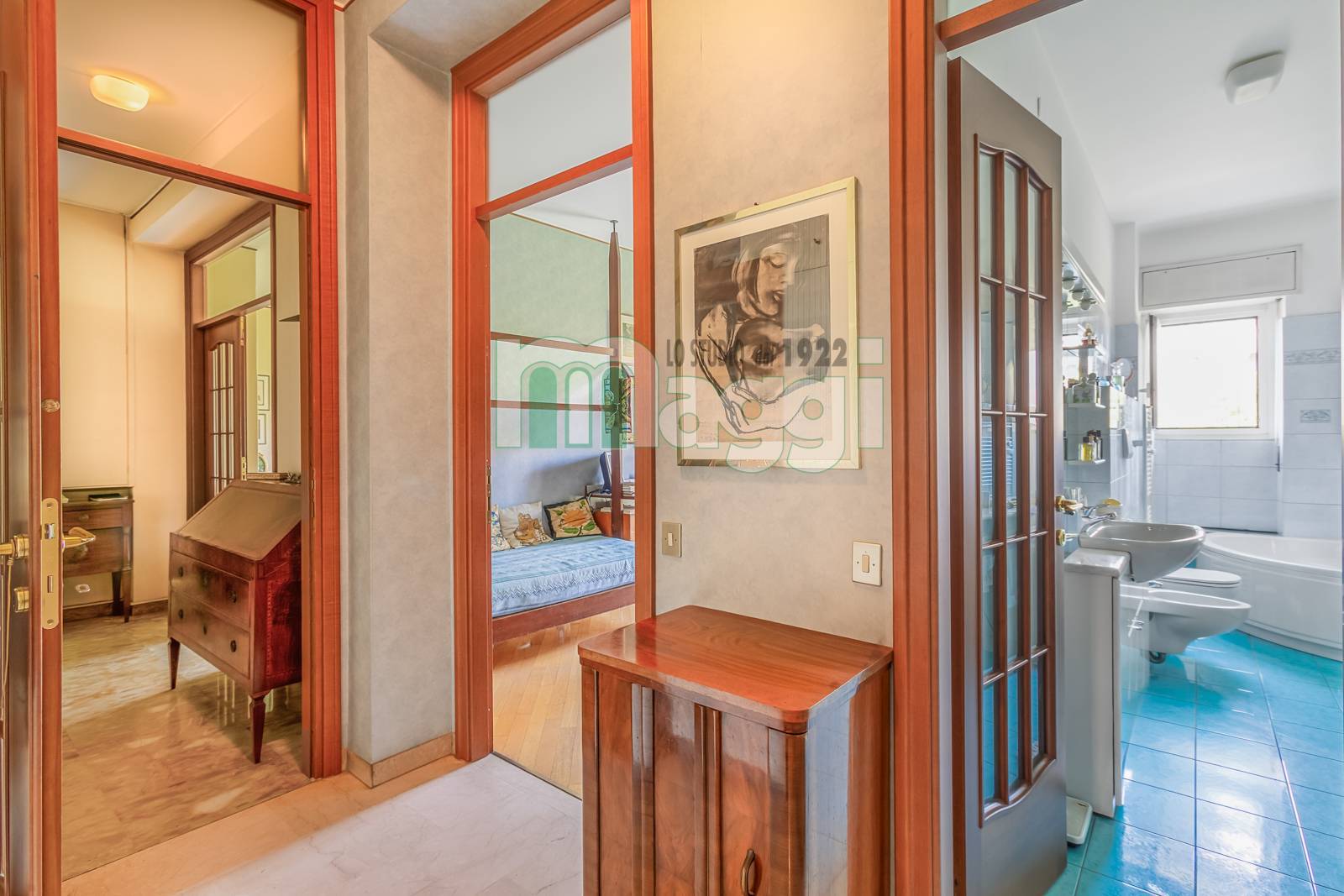 L'Appartamento di circa 125 metri quadrati è molto ben suddiviso e composto da ampio ingresso, spazioso soggiorno, cucina con balconata, due ampie camere con balcone, doppi servizi finestrati.