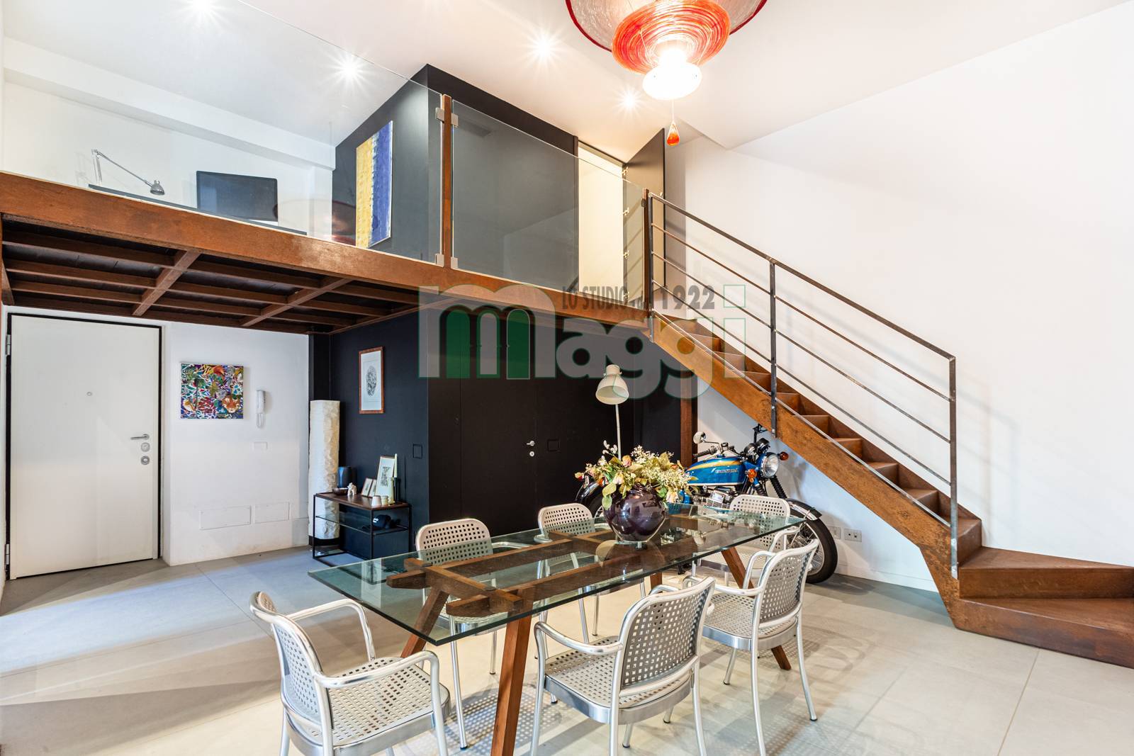 L' immobile è così composto: ampio e accogliente soggiorno con cucina a vista, camera da letto matrimoniale, 2 bagni, lavanderia, soppalco. Altezza soffitti mt 4,25.