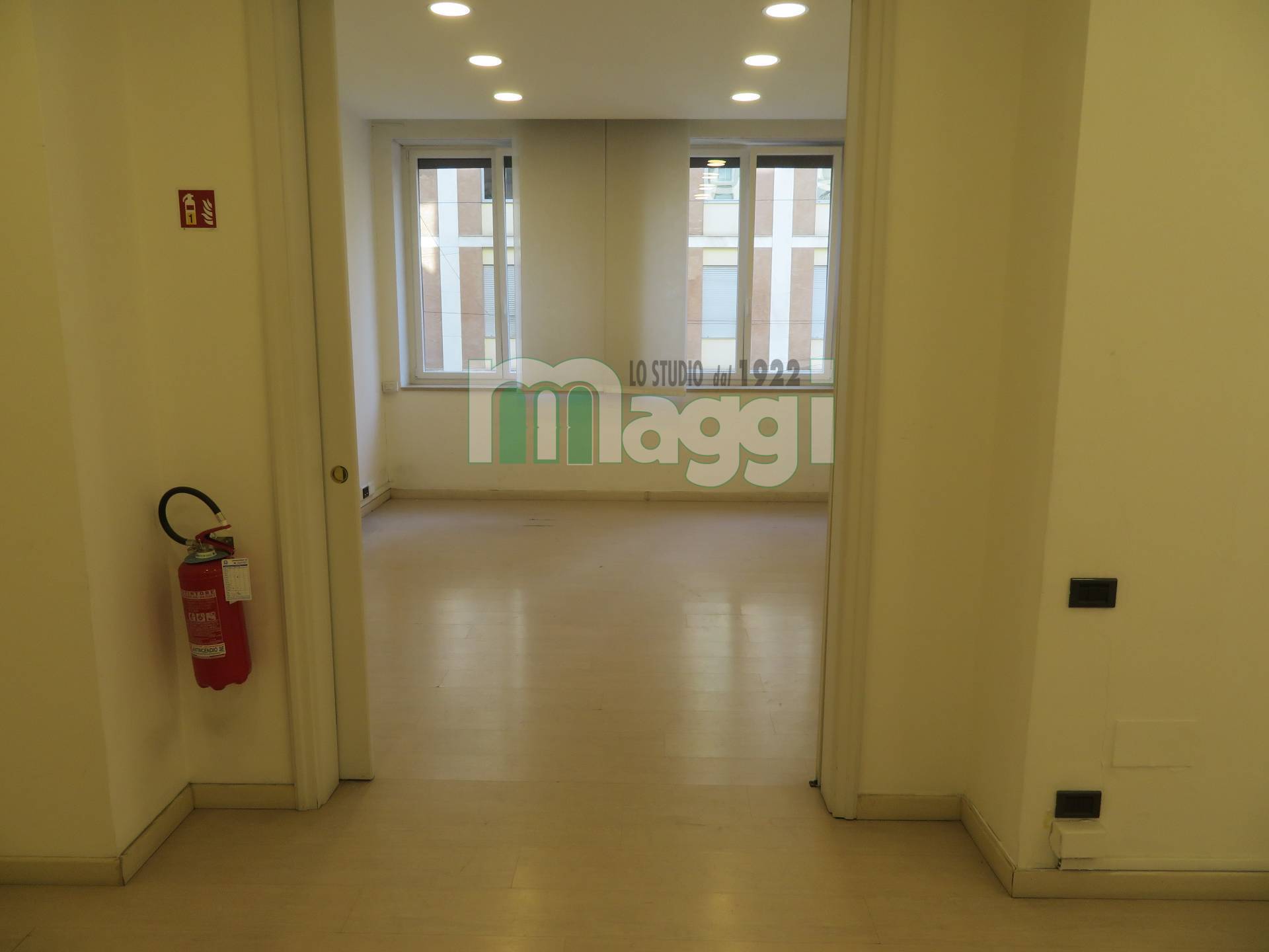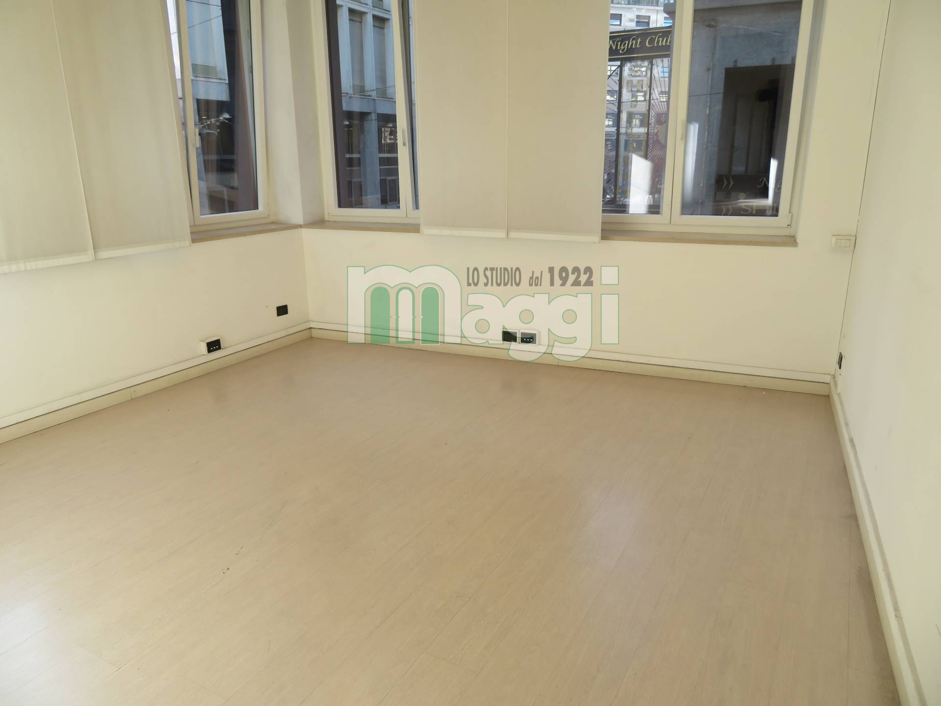 Adiacenze piazza Diaz, via Larga. affittasi Ufficio vuoto luminoso e climatizzato di quattro ampi locali e doppi servizi in palazzo signorile con servizio di portineria, due ascensori. Serramenti nuovi con tapparelle elettriche. Ottime condizioni generali, visitabile su appuntamento. Zona molto servita dai mezzi pubblici di superficie e da 3 Metropolitane, M1-3 linee rossa e gialla Duomo, metropolitana M3 Missori, comodo collegamento diretto all’aeroporto di Linate mediante metropolitana M4 linea blu Sforza – Policlinico. Euro 2.667 canone di locazione oltre euro 417 spese condominiali con costo del riscaldamento centralizzato incluso. APE classe D 218,65 kWh/m2a. Rif. 66246M.