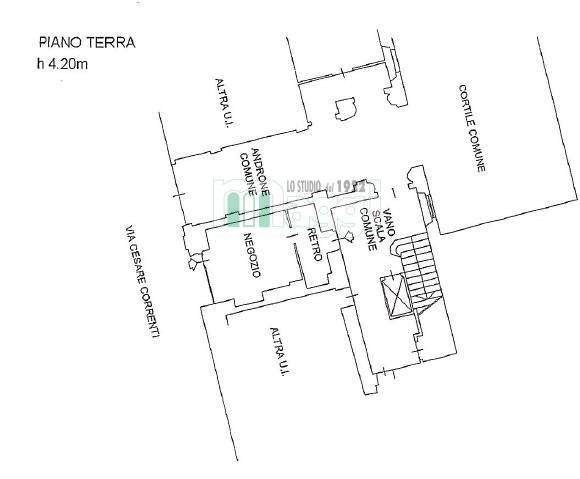Con una superficie totale di 30 metri quadrati, il Negozio è composto da un ampio locale che può essere adibito a spazio espositivo o a vendita, un bagno esterno ad uso esclusivo e un'ampia cantina.